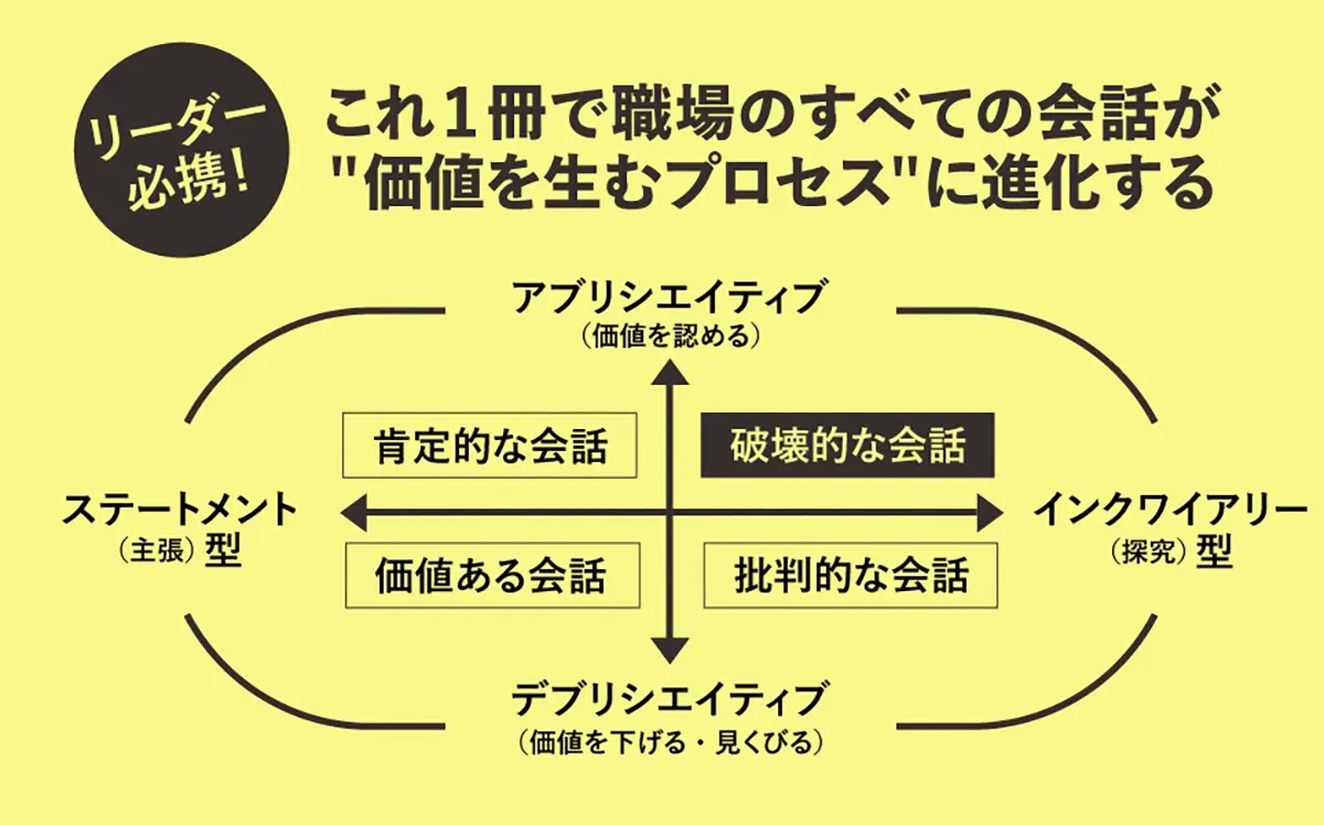 本書が提案するのは、過去の失敗や欠点を探す代わりに、「未来」と「強み」に焦点を当てる対話のスタイルである。ベースになっているのは「アプリシエイティブ・インクワイアリー(AI)」という、35年以上の研究に裏打ちされたメソッドだ。