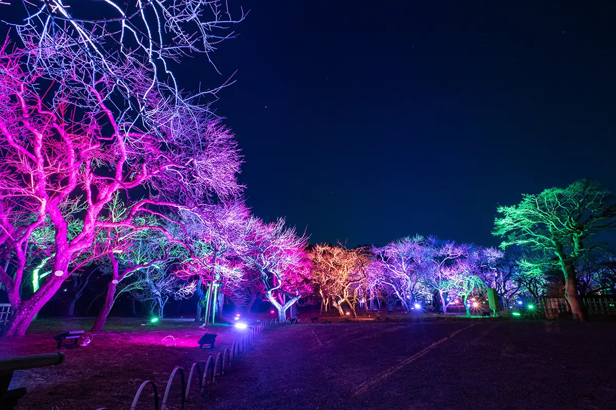 第130回を迎える水戸の梅まつりと合わせ、日中は約100品種3,000本の梅を鑑賞し、夜はライトアップで幻想的な世界に浸る。江戸時代の美意識と現代技術が交差する16日間、前売チケットで確実に確保したい。