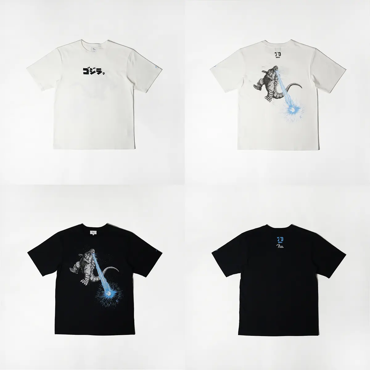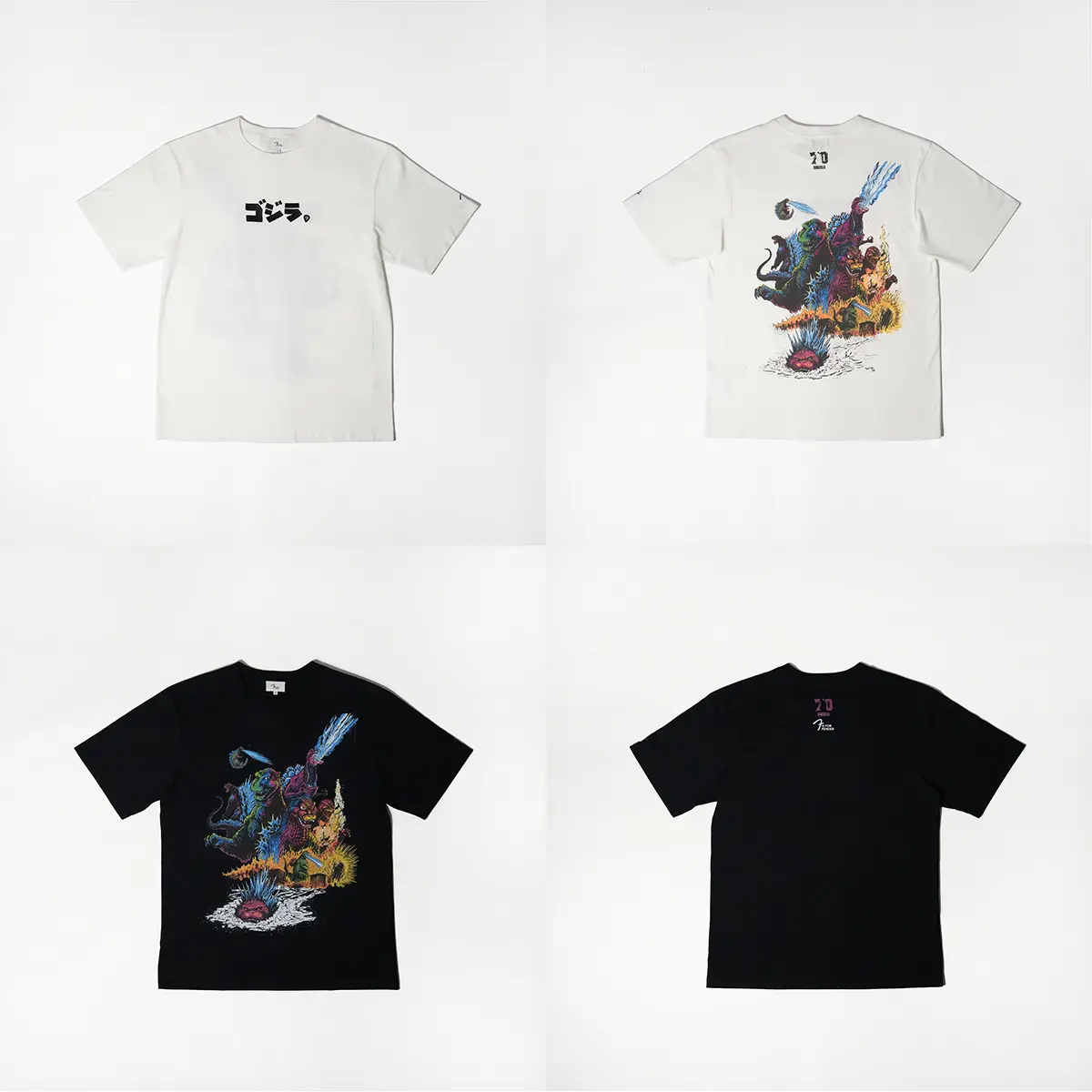 さらに驚くべきは、トム・ニーリーによるアートワークだ。ブラックライトを当てると、まるでゴジラが放射熱線を放っているかのように発光する特殊仕様になっているという。フロントには平成ゴジラをモノクロで描き、バックには昭和、平成、ミレニアム、『シン・ゴジラ』、そして『ゴジラ-1.0』まで、各時代のゴジラの姿が表現されている。