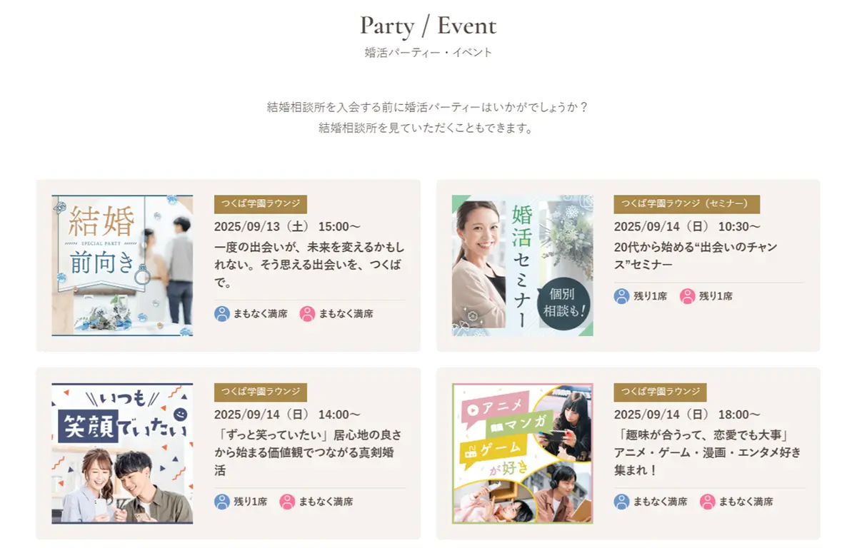 一つ目は、地域密着情報の充実だ。茨城県内、とりわけつくば市周辺に特化した婚活イベントやサポート事例を発信していくという。地元に根差した出会いをサポートする姿勢を明確にしたわけだ。
