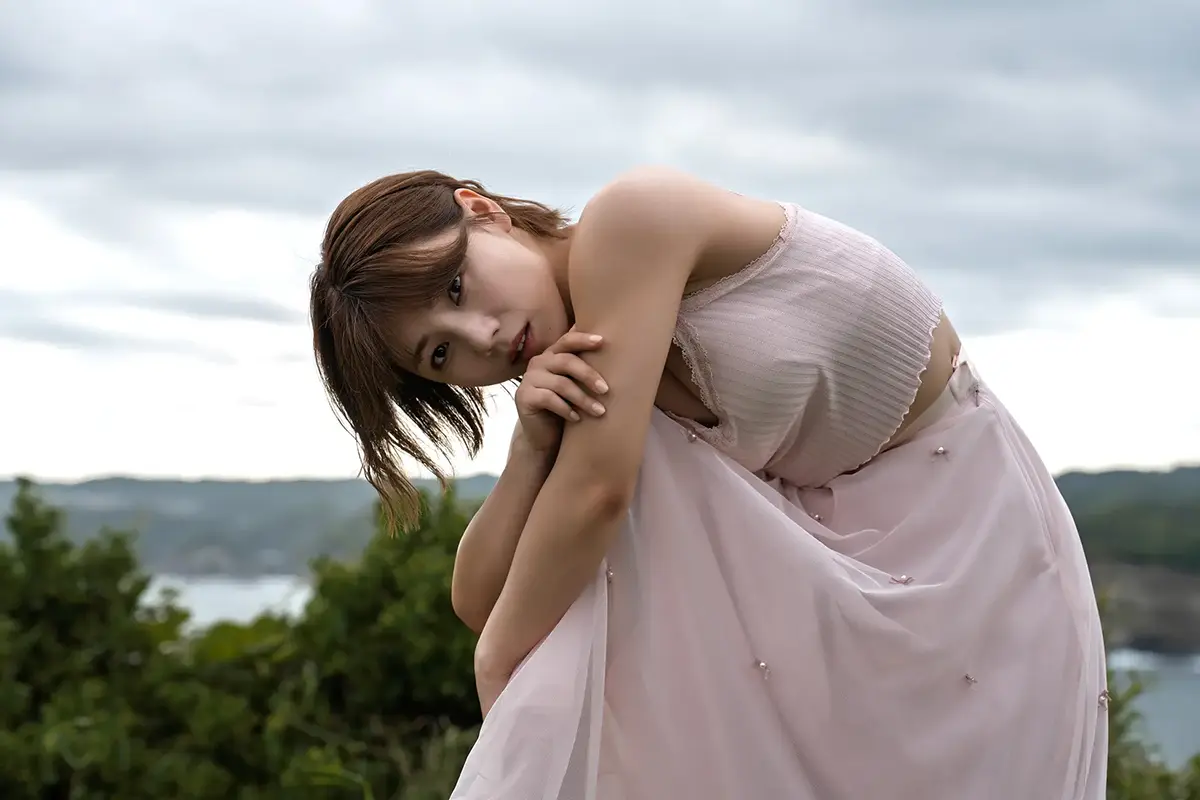 故郷の海を望む丘の上で、風にピンクのスカートをなびかせながら見せる天真爛漫な笑顔のカットもある。彼女の原点である健康的な魅力と、洗練された大人の女性の雰囲気が同居した、象徴的な一枚になっているそうだ。