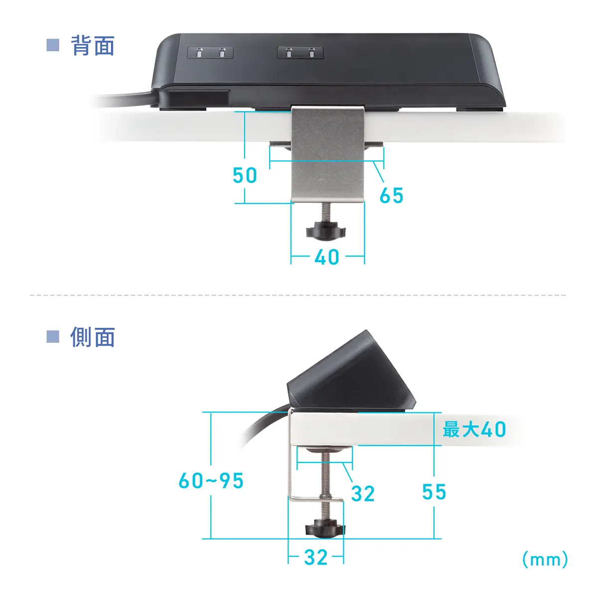 品名:クランプ固定式タップ(AC4個口+USB-C×3+USB-A×1・PD65W)